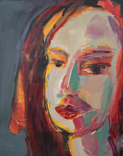 Glow in your hair- Intuitief , kleurrijk geschilderd portret.